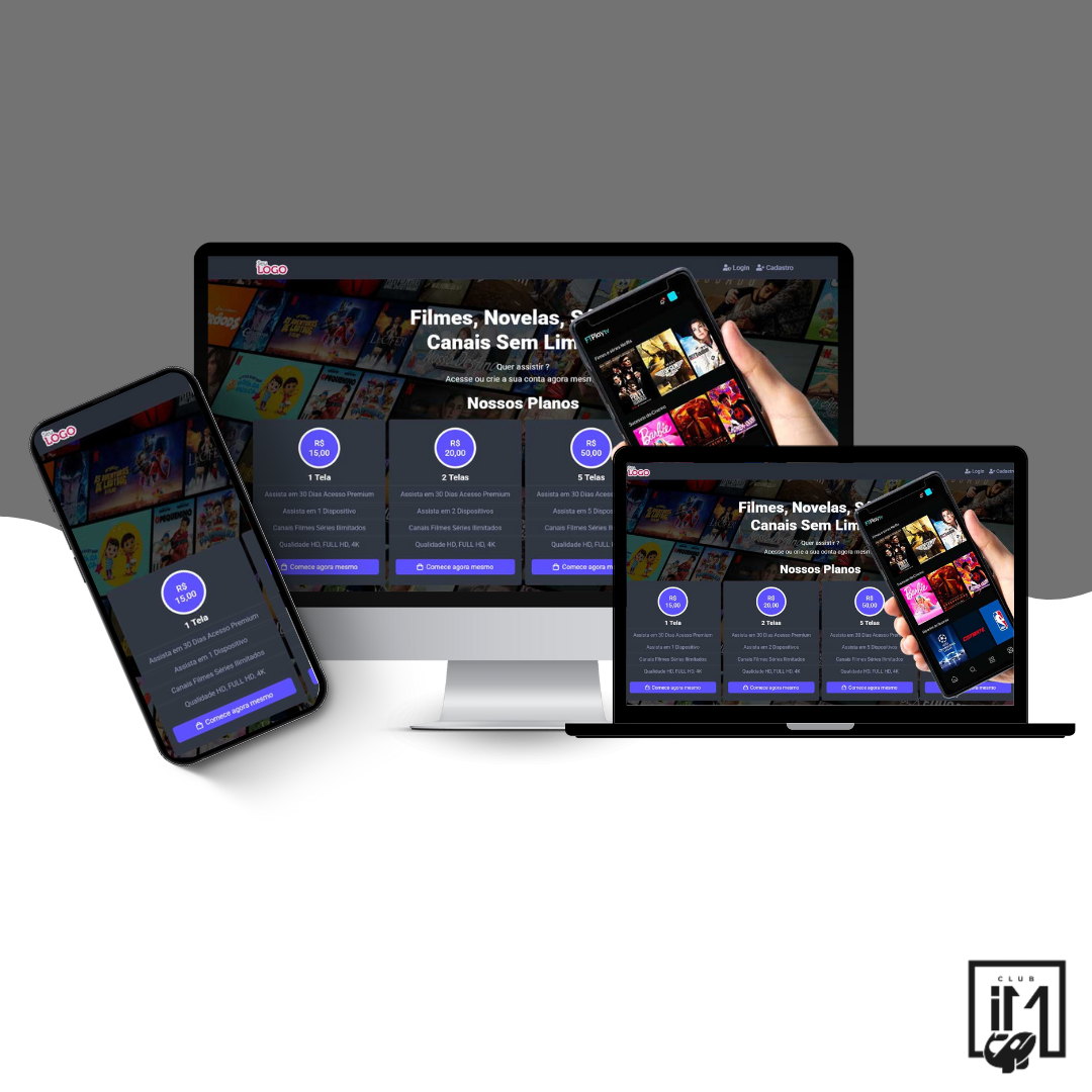 Exclusivo e Sob Medida – Uma identidade visual especificamente desenvolvida para o seu público, que seja compatível com o que ele procura e que ultrapasse suas expectativas de exibir seu catálogo de Filmes e Séries que demonstre segurança e confiança.