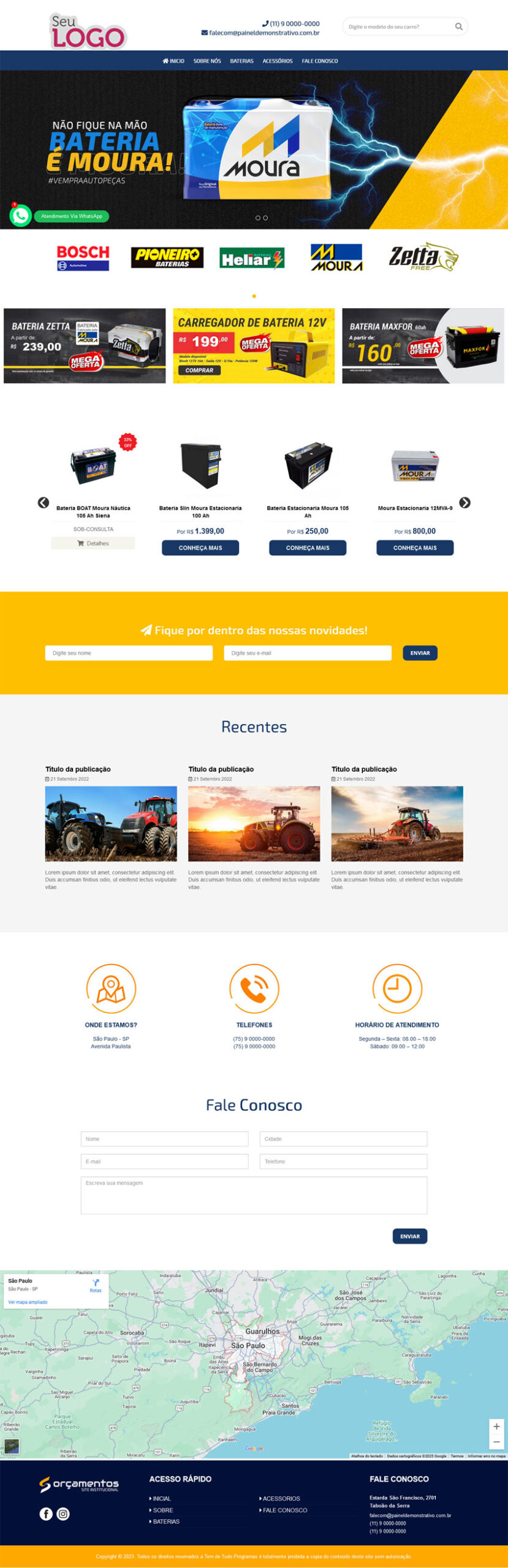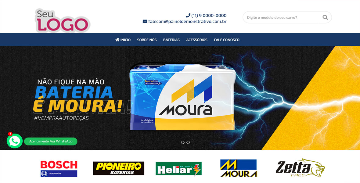 Website para Empresas de vendas de Baterias Automotivas ou de qualquer segmento similar, construído em uma estrutura que você pode construir facilmente um site bonito, moderno e limpo que tenha praticamente tudo o que um site precisa, desde criar páginas fixas, depoimentos, faq, portfólio, sessão da equipe, quem somos, serviço, notícias, eventos, faq, galerias de fotos e vídeos, páginas de contato e muito mais recursos formidáveis.